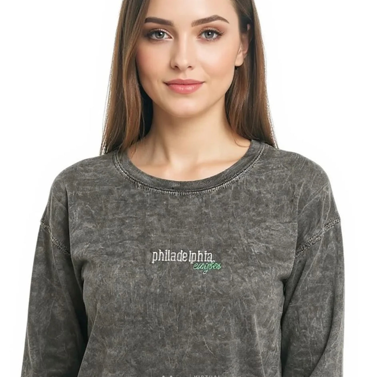 Vintage wash embroidered Philadelphia eagles long sleeve tee